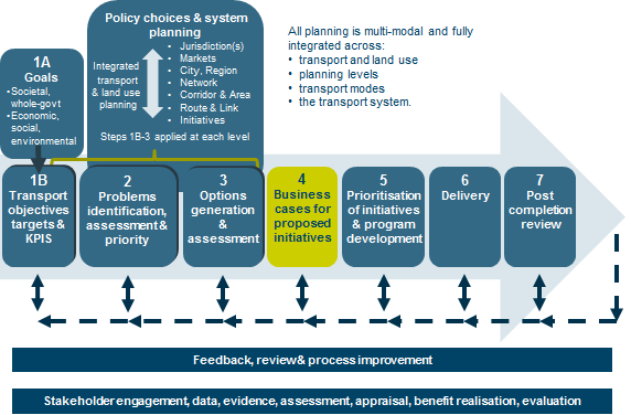 The Business Case should be developed in stages as progress is made through the planning and assessment Framework. The Business Case at each stage should be referred to by a different name to distinguish the different stages. The naming proposed in the ATAP Guidelines is: Business Case: Strategic, Rapid; and Full/Final.