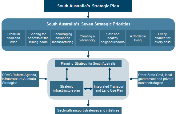 The delivery of the Plan focuses on putting in place the right regulatory framework. Subject to the consideration of an Expert Panel undertaking a review of South Australia’s planning legislation, this framework proposes to bind the Plan to the South Australian Planning Strategy. The Plan also proposes improved governance arrangements that align multiple levels of government planning with the delivery of land use/transport outcomes.