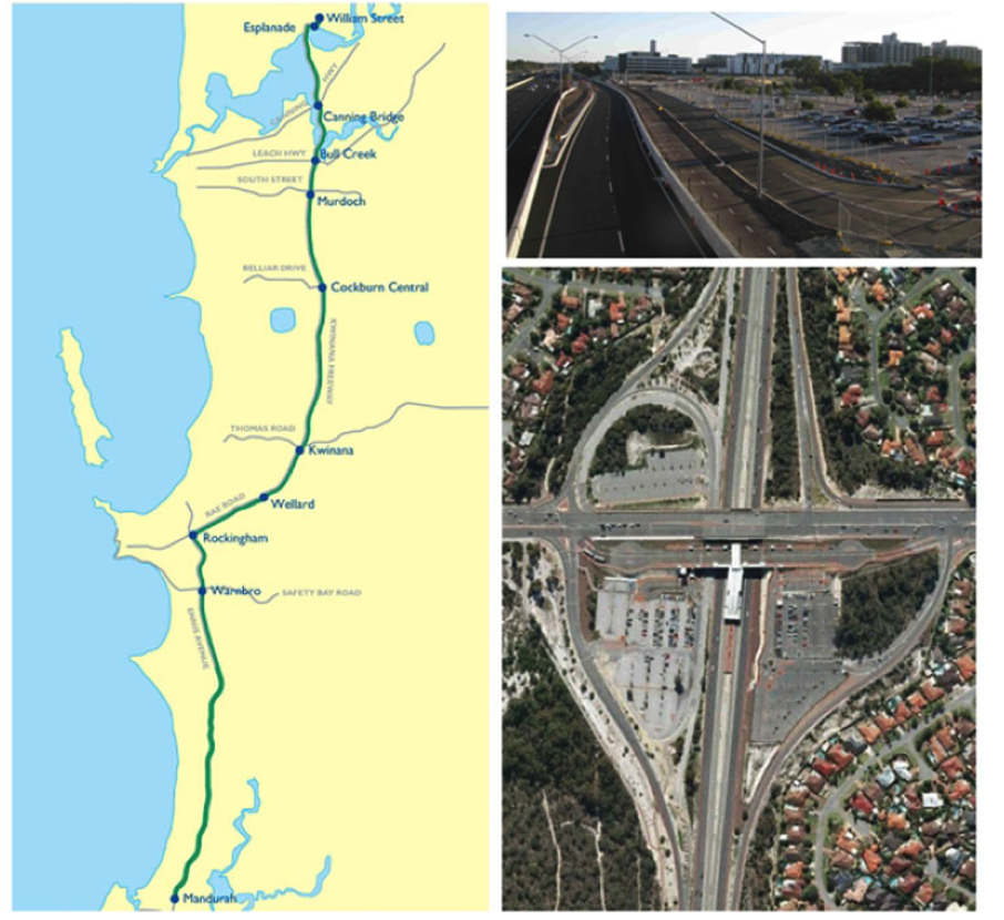 Investment in modern heavy rail commuter infrastructure is transforming Perth’s urban structure. The Mandurah railway line opened in 2007. It is a suburban railway line that runs through the south western suburbs of Perth, connecting .Perth with Mandurah via Rockingham. While operating conditions in the new suburban rail system are not always ideal - for example, some train services run down the centre of freeways - the community has flocked to the network. It has influenced more compact forms of satellite development in the northern growth areas of Perth while improving accessibility to the Perth CBD.