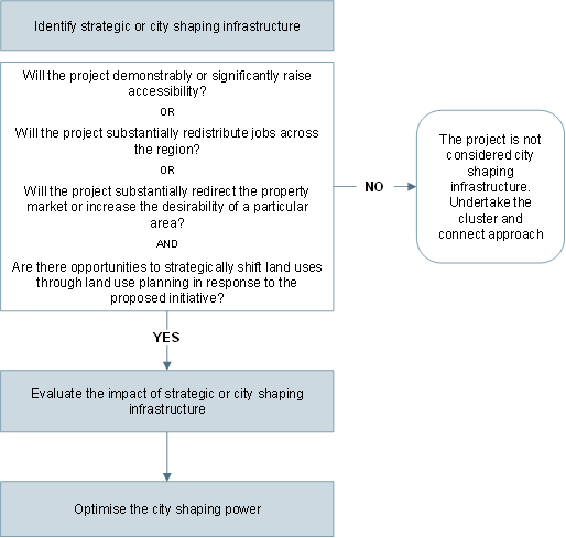 This section outlines the principles for identifying, appraising and optimising city shaping infrastructure to maximise land use and transport benefits.