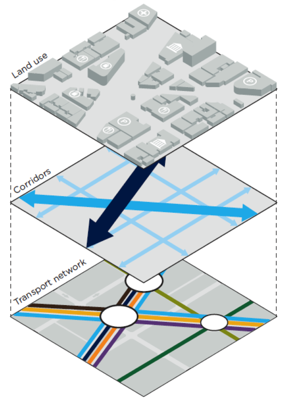 Figure 16: Cluster and connect model: relationship between land use, corridors and network planning