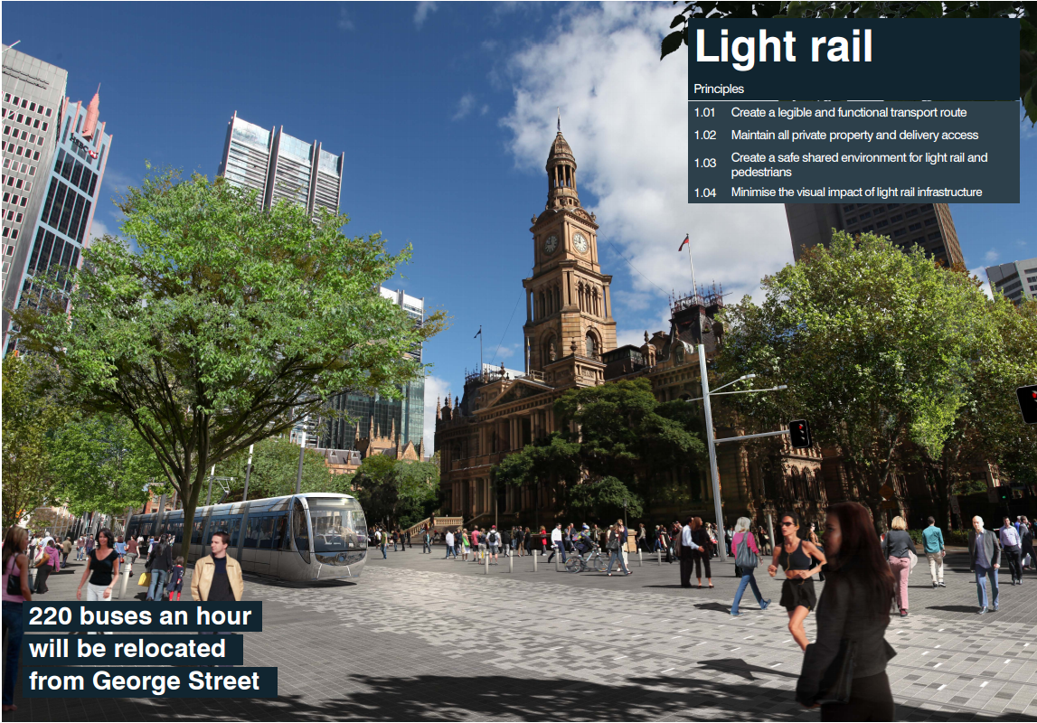 The concept plan is supported by the George Street 2020: A Public Domain Activation Strategy which provides landowners and tenants with a vision for how George Street will become a pedestrian boulevard with light rail running through it and how future developments can make the most of this vision (City of Sydney, 2015). This highlights a coordinated approach between state and local government in terms of ITLUP.
