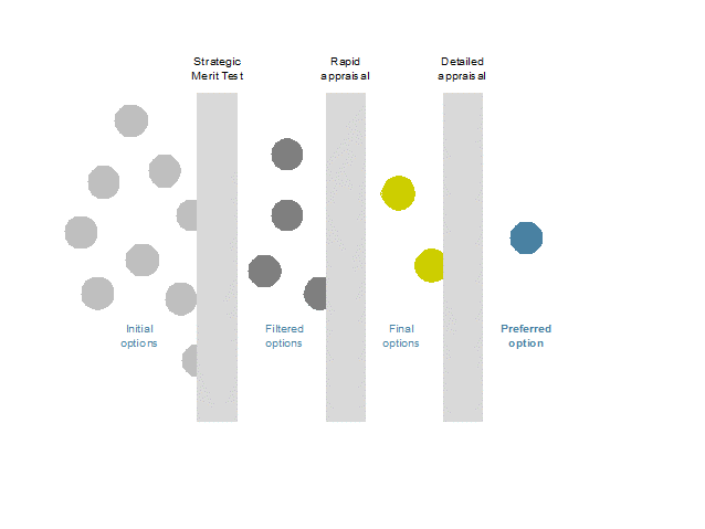 Stage 2[2] in the options assessment process is a rapid appraisal of the shorter list of options that have passed the Strategic Merit Test.
