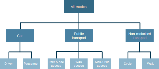 For studies where public transport passenger demand forecasting is the focus, then it is highly desirable to separately model the mode of access to the public transport system, e.g. walking/cycling, park-and-ride and kiss-and-ride.